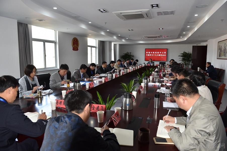 为认真学习贯彻党的十九大精神,深刻领会新时代中国特色社会主义思想的丰富内涵,全面准确把握社会主义经济建设、政治建设、文化建设、社会建设、生态文明建设的重大部署和新时代党的建设新的伟大工程总要求,切实把思想和行动统一到党的十九大精神上来,10月27日下午,南通中院党组书记、院长曹忠明亲自主持中心组“学习贯彻党的十九大精神”专题理论学习,市中院全体院领导、各部门主要负责人参加学习。