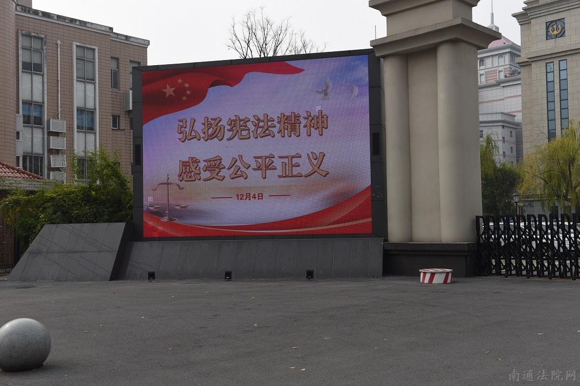 “弘扬宪法精神,感受公平正义”,“学习宪法、宣传宪法、遵守宪法!”2017124日,南通中院东大门的LED屏不断切换各种宪法标语,过往的市民纷纷驻足观看。今年的124日是第四个国家宪法日,为了进一步深入贯彻落实党的十九大会议精神,增强全民法治观念,推动全社会树立宪法意识,南通全市法院开展一系列活动迎接“12.4”国家宪法日。