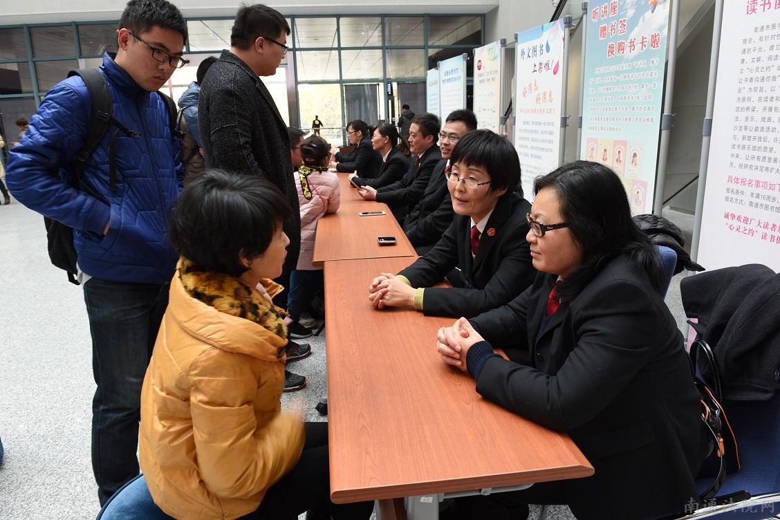 举办多场法律咨询法律讲座。123日,利用周日的时间,中院组织20名各个业务条线的法官,走进南通市图书馆,举办“法官与读者面对面(第三期)”活动,为通城的读者普法送法。